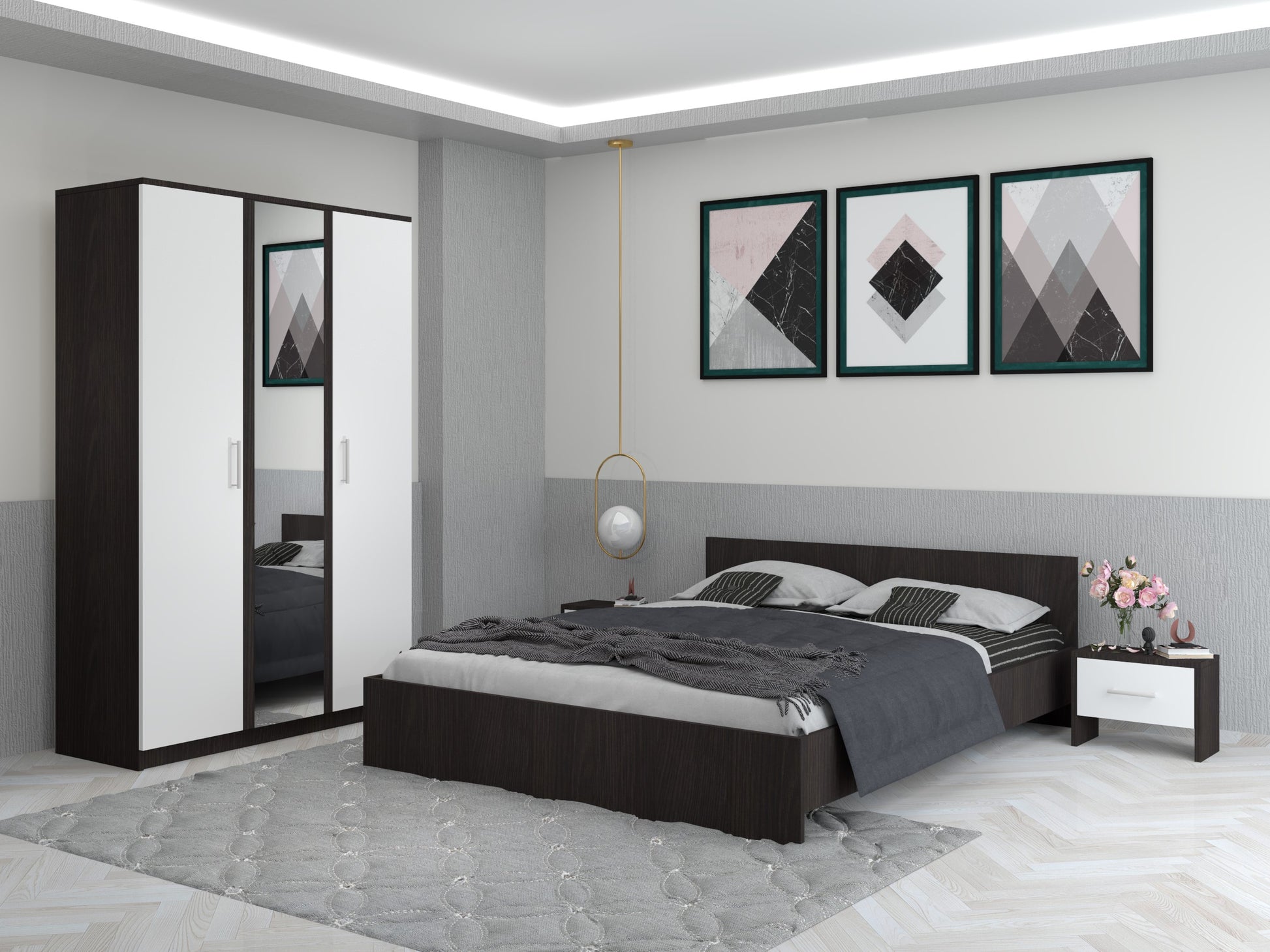 Dormitor EVA – Pat Modern cu 2 Noptiere și Dulap cu Oglindă