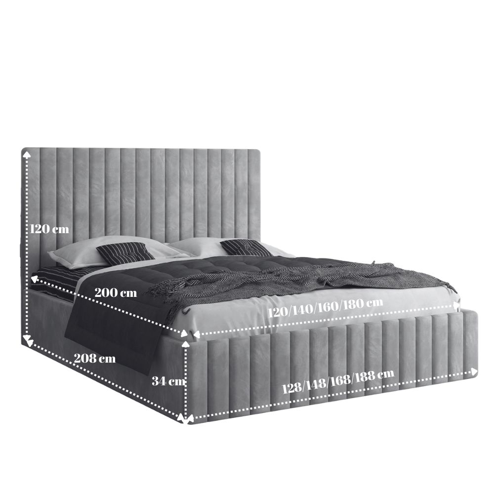 Tăblia capitonată aduce un aer luxos, iar lateralele tapițate completează perfect aspectul modern.