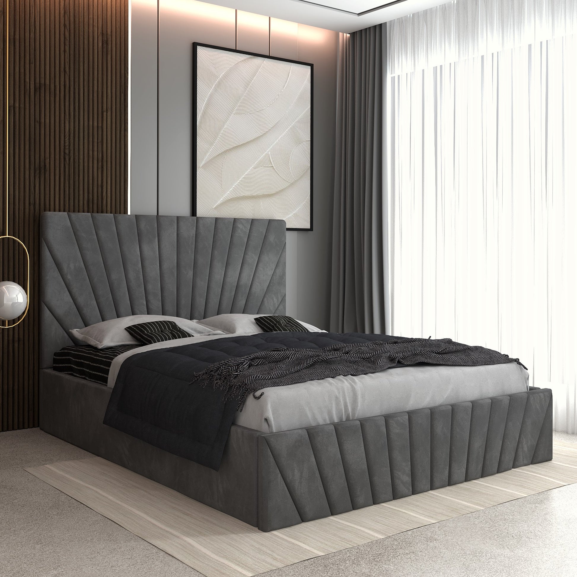 Realizat din materiale premium și conceput pentru durabilitate, Patul Astra se remarcă prin eleganța liniilor sale verticale și aspectul său sofisticat, potrivit atât interioarelor minimaliste, cât și celor moderne sau clasice.