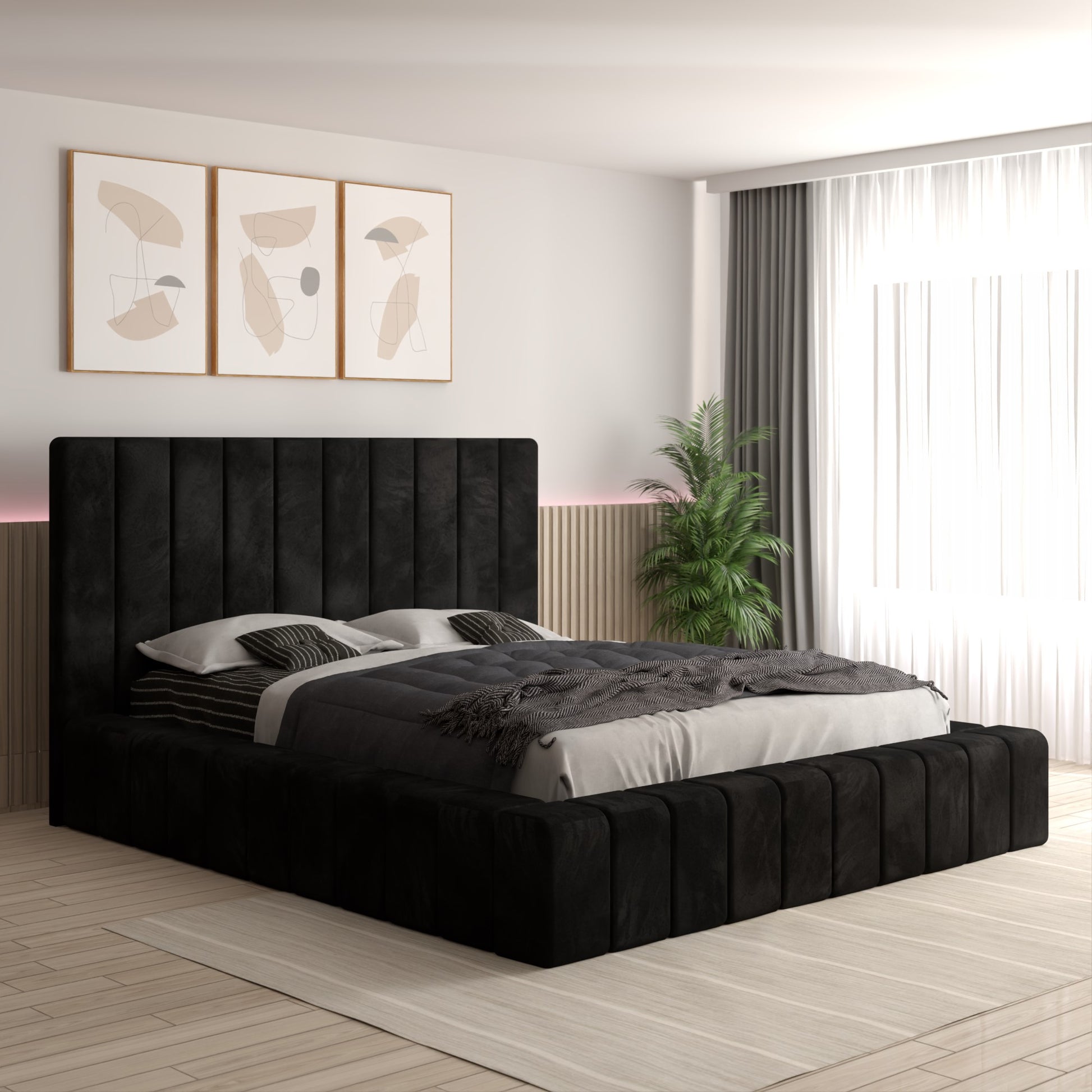 Patul tapițat ELA este alegerea ideală pentru cei care își doresc un dormitor rafinat, confortabil și modern. Cu un design luxuriant și o tăblie înaltă, realizată din panouri verticale capitonate, acest model devine instant piesa centrală a oricărei încăperi.