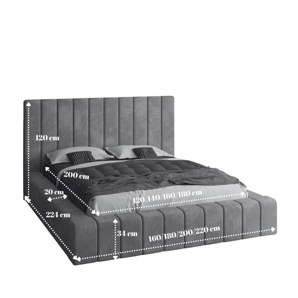 🔹 Tapițerie premium – stofă moale, rezistentă, ce conferă dormitorului un plus de stil.