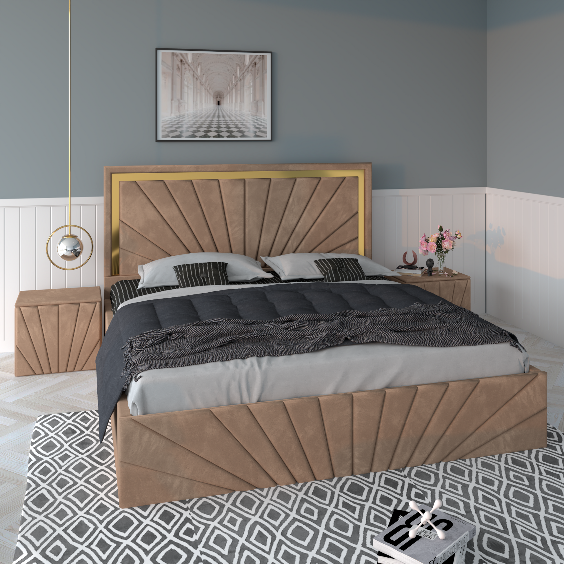 Pat Tapitat NOVA Cu 2 Noptiere Tapitate
