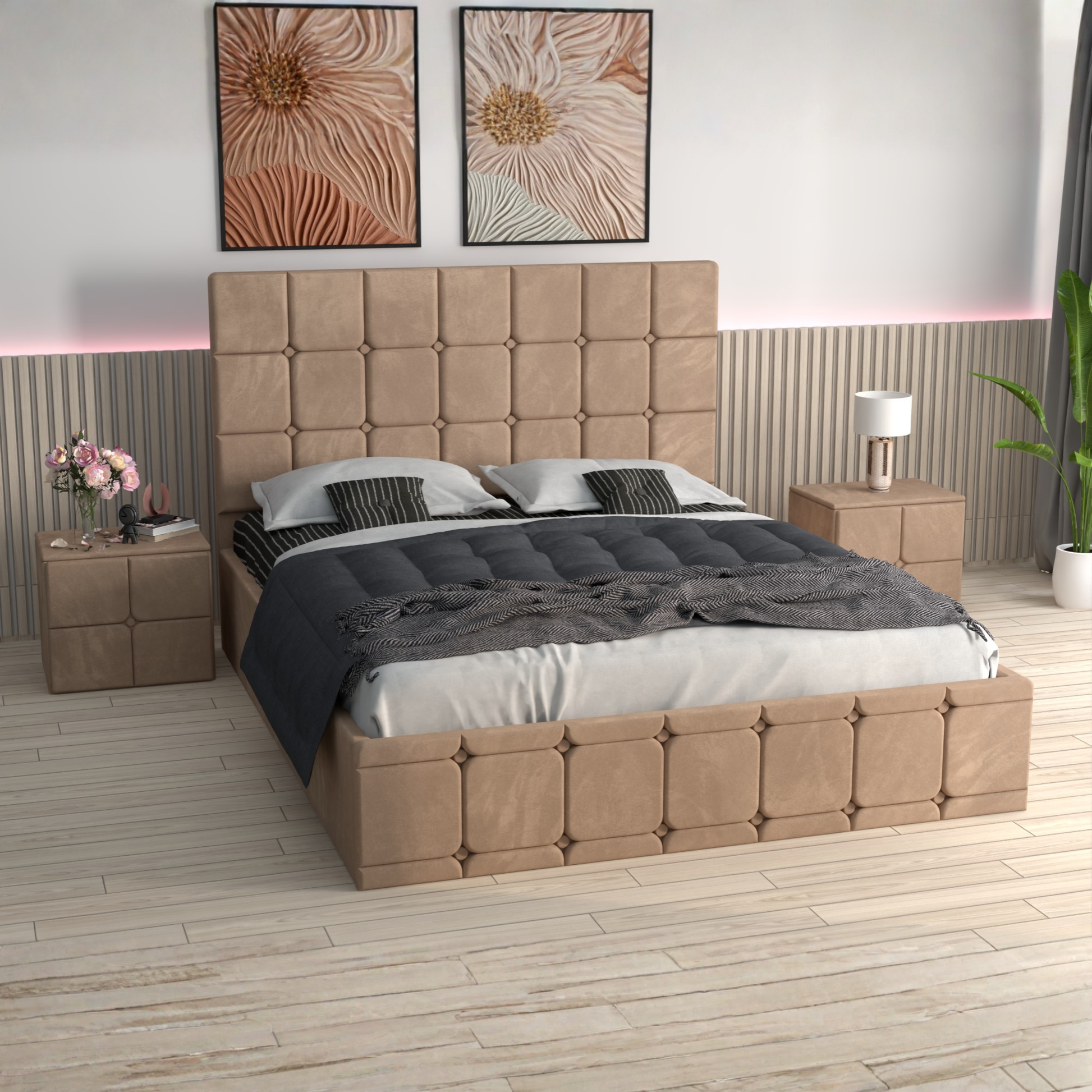 Pat Tapitat REGAL Cu 2 Noptiere Tapitate