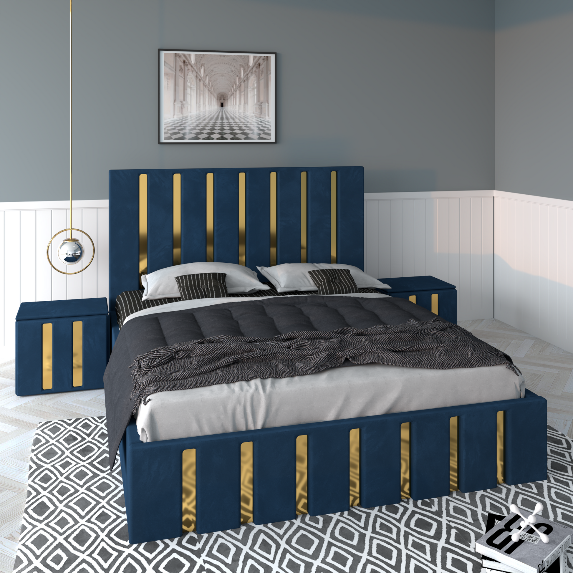 Pat Tapitat ROYAL Cu 2 Noptiere Tapitate